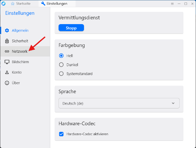 Klicke dazu auf Netzwerk in der linken Spalte: